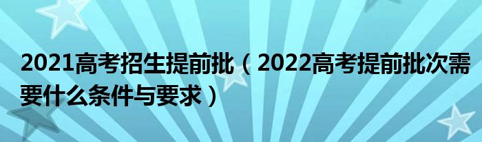 大家好,小高来为大家解答以上问题。2021高考招生提前批,2022高考提前批次需要什么条件与要求很多人还不知道,现在让我们一起来看看吧!