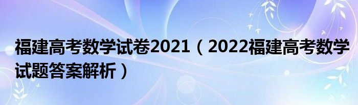大家好,小高来为大家解答以上问题。福建高考数学试卷2021,2022福建高考数学试题答案解析很多人还不知道,现在让我们一起来看看吧!