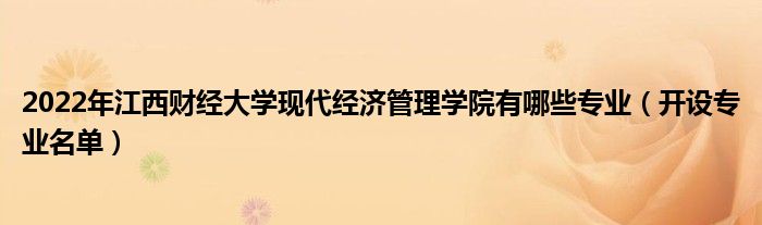 大家好,小高来为大家解答以上问题。2022年江西财经大学现代经济管理学院有哪些专业,开设专业名单很多人还不知道,现在让我们一起来看看吧!