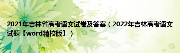 大家好,小高来为大家解答以上问题。2021年吉林省高考语文试卷及答案,2022年吉林高考语文试题【word精校版】很多人还不知道,现在让我们一起来看看吧!