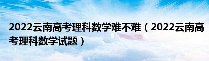 大家好,小高来为大家解答以上问题。2022云南高考理科数学难不难,2022云南高考理科数学试题很多人还不知道,现在让我们一起来看看吧!