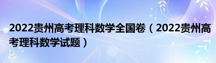 大家好,小高来为大家解答以上问题。2022贵州高考理科数学全国卷,2022贵州高考理科数学试题很多人还不知道,现在让我们一起来看看吧!