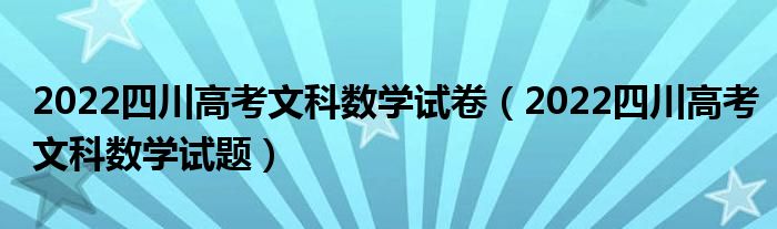 大家好,小高来为大家解答以上问题。2022四川高考文科数学试卷,2022四川高考文科数学试题很多人还不知道,现在让我们一起来看看吧!