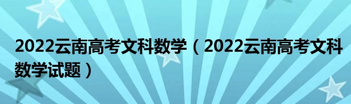 大家好,小高来为大家解答以上问题。2022云南高考文科数学,2022云南高考文科数学试题很多人还不知道,现在让我们一起来看看吧!