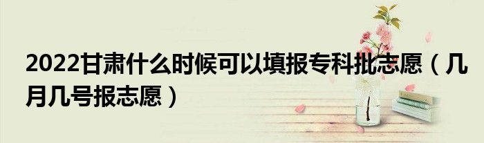 大家好,小高来为大家解答以上问题。2022甘肃什么时候可以填报专科批志愿,几月几号报志愿很多人还不知道,现在让我们一起来看看吧!