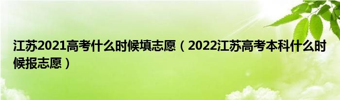 大家好,小高来为大家解答以上问题。江苏2021高考什么时候填志愿,2022江苏高考本科什么时候报志愿很多人还不知道,现在让我们一起来看看吧!