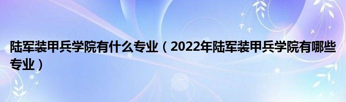 大家好,小高来为大家解答以上问题。陆军装甲兵学院有什么专业,2022年陆军装甲兵学院有哪些专业很多人还不知道,现在让我们一起来看看吧!
