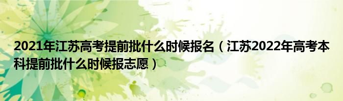 大家好,小高来为大家解答以上问题。2021年江苏高考提前批什么时候报名,江苏2022年高考本科提前批什么时候报志愿很多人还不知道,现在让我们一起来看看吧!