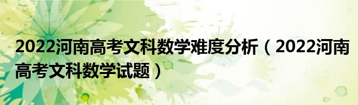 大家好,小高来为大家解答以上问题。2022河南高考文科数学难度分析,2022河南高考文科数学试题很多人还不知道,现在让我们一起来看看吧!