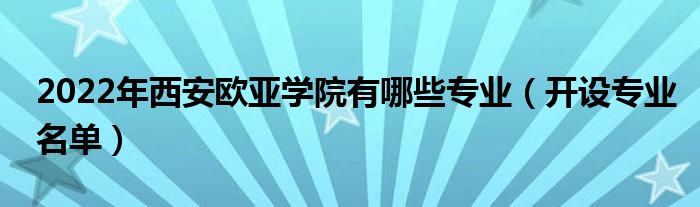 大家好,小高来为大家解答以上问题。2022年西安欧亚学院有哪些专业,开设专业名单很多人还不知道,现在让我们一起来看看吧!