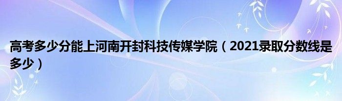 大家好,小高来为大家解答以上问题。高考多少分能上河南开封科技传媒学院,2021录取分数线是多少很多人还不知道,现在让我们一起来看看吧!