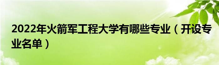 大家好,小高来为大家解答以上问题。2022年火箭军工程大学有哪些专业,开设专业名单很多人还不知道,现在让我们一起来看看吧!