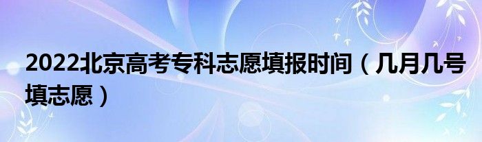 大家好,小高来为大家解答以上问题。2022北京高考专科志愿填报时间,几月几号填志愿很多人还不知道,现在让我们一起来看看吧!