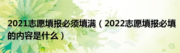 大家好,小高来为大家解答以上问题。2021志愿填报必须填满,2022志愿填报必填的内容是什么很多人还不知道,现在让我们一起来看看吧!
