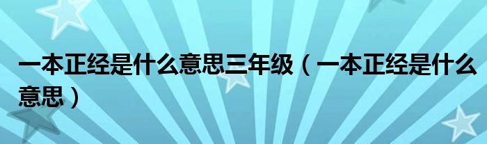 大家好,小高来为大家解答以上问题。一本正经是什么意思三年级,一本正经是什么意思很多人还不知道,现在让我们一起来看看吧!
