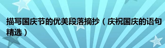 大家好,小高来为大家解答以上问题。描写国庆节的优美段落摘抄,庆祝国庆的语句精选很多人还不知道,现在让我们一起来看看吧!