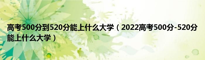 大家好,小高来为大家解答以上问题。高考500分到520分能上什么大学,2022高考500分-520分能上什么大学很多人还不知道,现在让我们一起来看看吧!