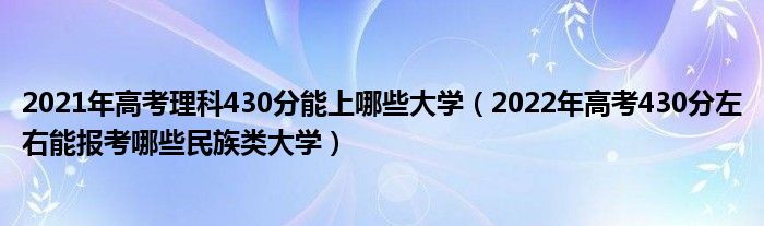 大家好,小高来为大家解答以上问题。2021年高考理科430分能上哪些大学,2022年高考430分左右能报考哪些民族类大学很多人还不知道,现在让我们一起来看看吧!