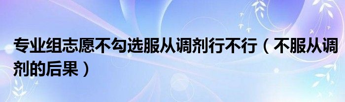 大家好,小高来为大家解答以上问题。专业组志愿不勾选服从调剂行不行,不服从调剂的后果很多人还不知道,现在让我们一起来看看吧!