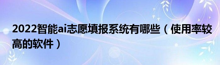 大家好,小高来为大家解答以上问题。2022智能ai志愿填报系统有哪些,使用率较高的软件很多人还不知道,现在让我们一起来看看吧!