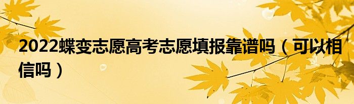 大家好,小高来为大家解答以上问题。2022蝶变志愿高考志愿填报靠谱吗,可以相信吗很多人还不知道,现在让我们一起来看看吧!
