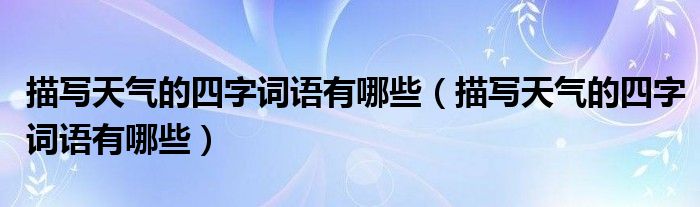 大家好,小高来为大家解答以上问题。描写天气的四字词语有哪些,描写天气的四字词语有哪些很多人还不知道,现在让我们一起来看看吧!