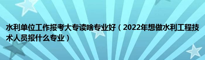 大家好,小高来为大家解答以上问题。水利单位工作报考大专读啥专业好,2022年想做水利工程技术人员报什么专业很多人还不知道,现在让我们一起来看看吧!