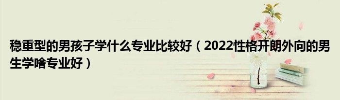 大家好,小高来为大家解答以上问题。稳重型的男孩子学什么专业比较好,2022性格开朗外向的男生学啥专业好很多人还不知道,现在让我们一起来看看吧!