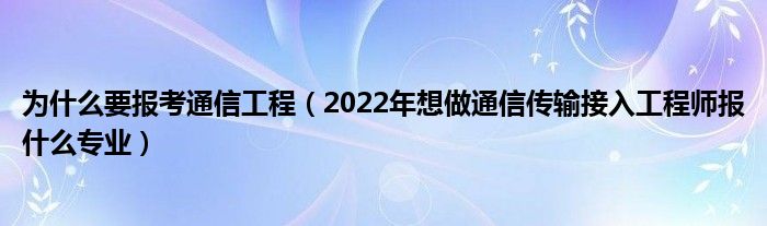 大家好,小高来为大家解答以上问题。为什么要报考通信工程,2022年想做通信传输接入工程师报什么专业很多人还不知道,现在让我们一起来看看吧!
