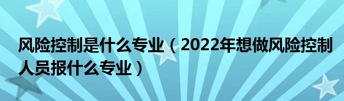 大家好,小高来为大家解答以上问题。风险控制是什么专业,2022年想做风险控制人员报什么专业很多人还不知道,现在让我们一起来看看吧!