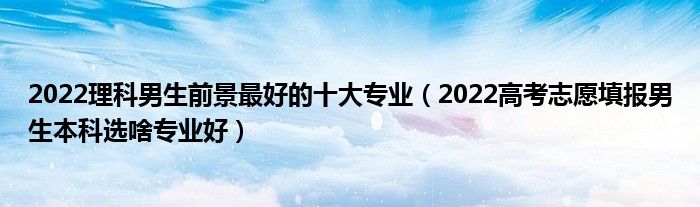 大家好,小高来为大家解答以上问题。2022理科男生前景最好的十大专业,2022高考志愿填报男生本科选啥专业好很多人还不知道,现在让我们一起来看看吧!