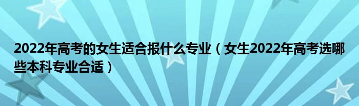 大家好,小高来为大家解答以上问题。2022年高考的女生适合报什么专业,女生2022年高考选哪些本科专业合适很多人还不知道,现在让我们一起来看看吧!