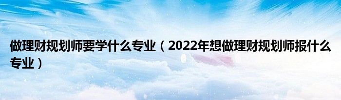 大家好,小高来为大家解答以上问题。做理财规划师要学什么专业,2022年想做理财规划师报什么专业很多人还不知道,现在让我们一起来看看吧!