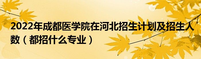 大家好,小高来为大家解答以上问题。2022年成都医学院在河北招生计划及招生人数,都招什么专业很多人还不知道,现在让我们一起来看看吧!