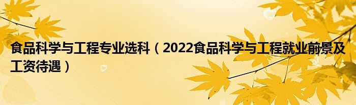 大家好,小高来为大家解答以上问题。食品科学与工程专业选科,2022食品科学与工程就业前景及工资待遇很多人还不知道,现在让我们一起来看看吧!