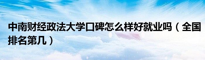 大家好,小高来为大家解答以上问题。中南财经政法大学口碑怎么样好就业吗,全国排名第几很多人还不知道,现在让我们一起来看看吧!