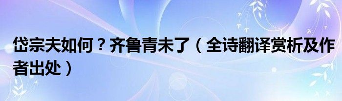 大家好,小高来为大家解答以上问题。岱宗夫如何?齐鲁青未了,全诗翻译赏析及作者出处很多人还不知道,现在让我们一起来看看吧!