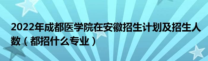 大家好,小高来为大家解答以上问题。2022年成都医学院在安徽招生计划及招生人数,都招什么专业很多人还不知道,现在让我们一起来看看吧!