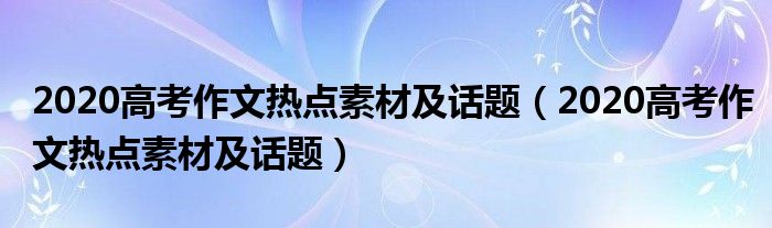 大家好,小高来为大家解答以上问题。2020高考作文热点素材及话题,2020高考作文热点素材及话题很多人还不知道,现在让我们一起来看看吧!
