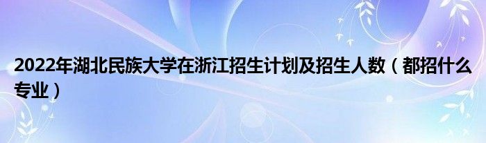 大家好,小高来为大家解答以上问题。2022年湖北民族大学在浙江招生计划及招生人数,都招什么专业很多人还不知道,现在让我们一起来看看吧!