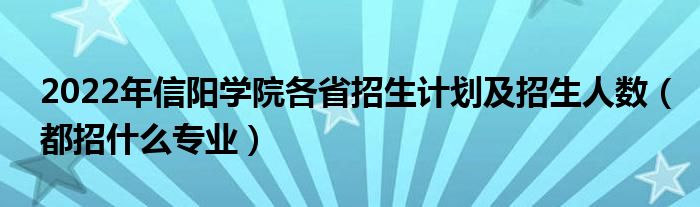 大家好,小高来为大家解答以上问题。2022年信阳学院各省招生计划及招生人数,都招什么专业很多人还不知道,现在让我们一起来看看吧!