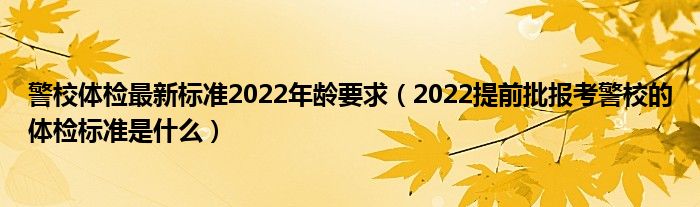 大家好,小高来为大家解答以上问题。警校体检最新标准2022年龄要求,2022提前批报考警校的体检标准是什么很多人还不知道,现在让我们一起来看看吧!