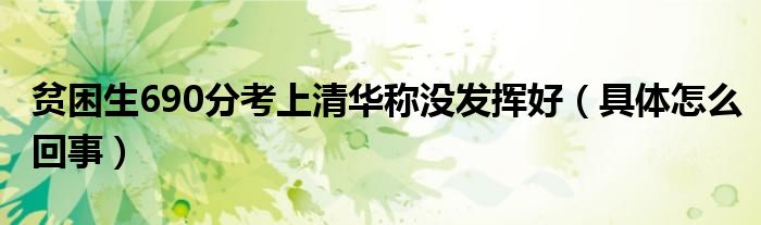大家好,小高来为大家解答以上问题。贫困生690分考上清华称没发挥好,具体怎么回事很多人还不知道,现在让我们一起来看看吧!