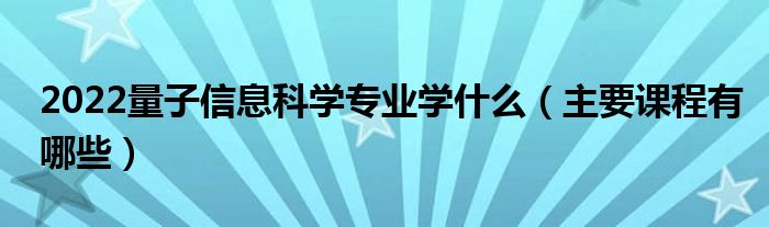 大家好,小高来为大家解答以上问题。2022量子信息科学专业学什么,主要课程有哪些很多人还不知道,现在让我们一起来看看吧!