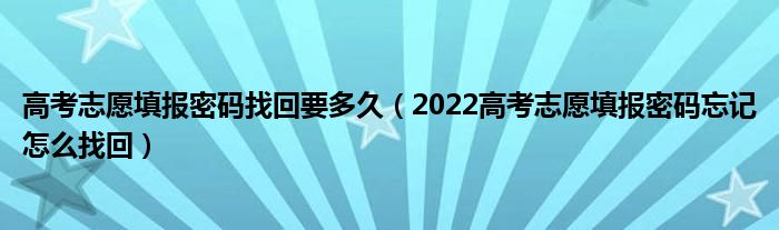 大家好,小高来为大家解答以上问题。高考志愿填报密码找回要多久,2022高考志愿填报密码忘记怎么找回很多人还不知道,现在让我们一起来看看吧!