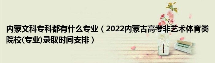 大家好,小高来为大家解答以上问题。内蒙文科专科都有什么专业,2022内蒙古高考非艺术体育类院校(专业)录取时间安排很多人还不知道,现在让我们一起来看看吧!