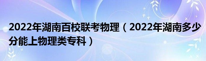 大家好,小高来为大家解答以上问题。2022年湖南百校联考物理,2022年湖南多少分能上物理类专科很多人还不知道,现在让我们一起来看看吧!