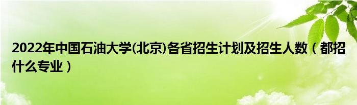 大家好,小高来为大家解答以上问题。2022年中国石油大学(北京)各省招生计划及招生人数,都招什么专业很多人还不知道,现在让我们一起来看看吧!
