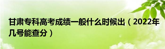 大家好,小高来为大家解答以上问题。甘肃专科高考成绩一般什么时候出,2022年几号能查分很多人还不知道,现在让我们一起来看看吧!