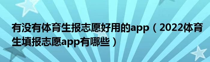 大家好,小高来为大家解答以上问题。有没有体育生报志愿好用的app,2022体育生填报志愿app有哪些很多人还不知道,现在让我们一起来看看吧!